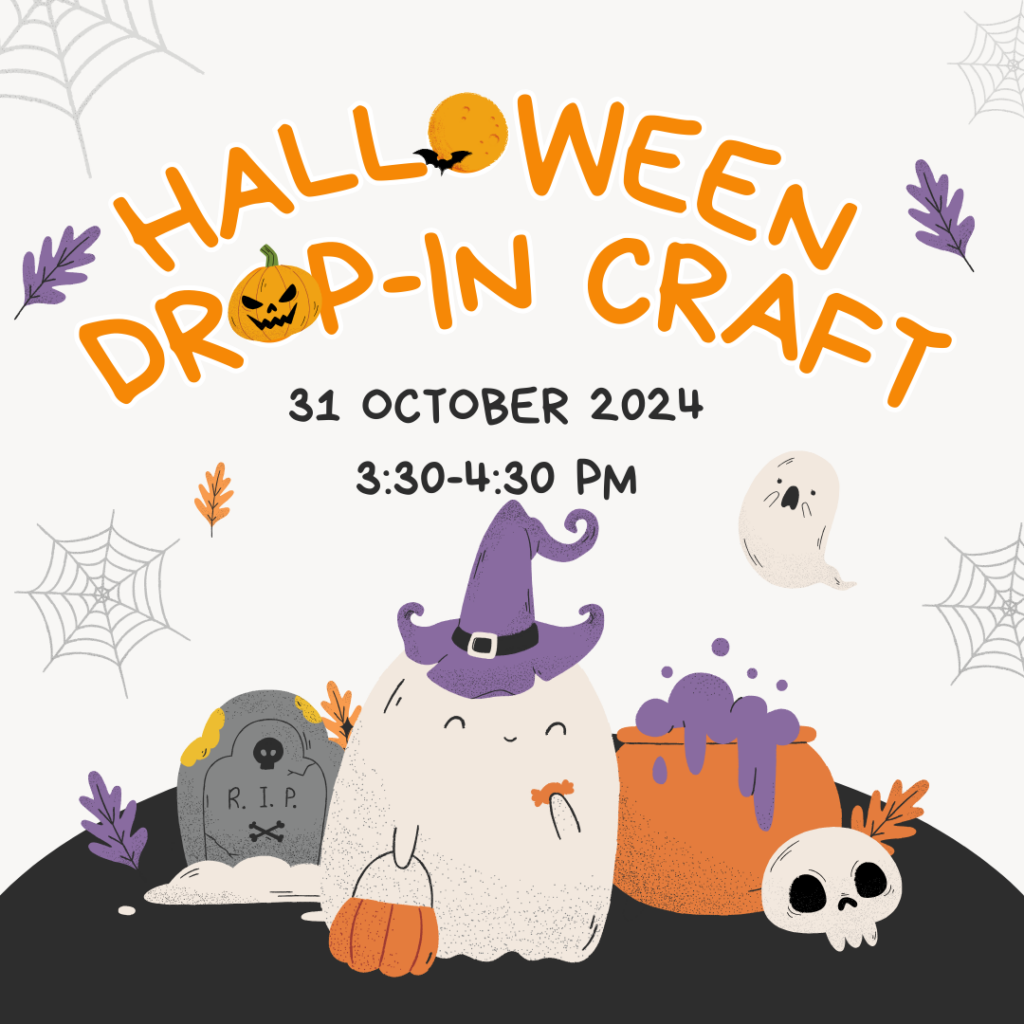 Stop in for an ooky-spooky Halloween craft and a lollipop, October 31st!