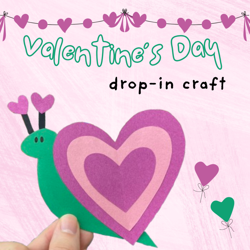 Stop in for a sweet snail valentine (Snalentine?) craft next week on Monday February 10th.